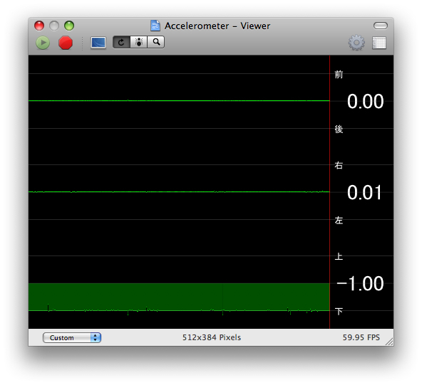ノイズなのか何なのか値がぶれぶれする。たぶん精度としては0.04Gくらい。