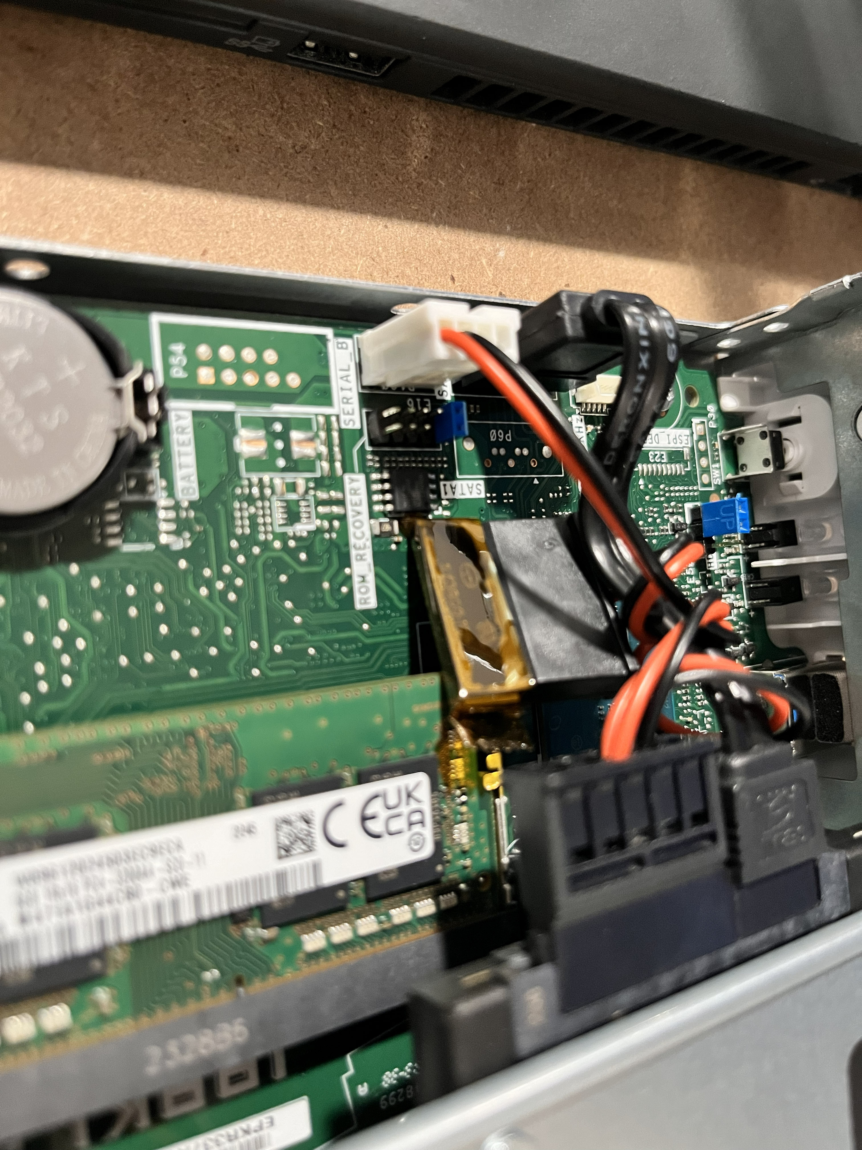 さて。CoreインストールとはいえVMとして載せる(つもり。まだ手を付けていない)ということで、RAMが8GBではあまりにも心許ないので32GBのモジュール(これが前の記事で触れた奴なんだが、もはや入手不能なのか……N100系とかでまだ需要ある規格のはずなんだが……あ、そうかコイツから抜いた8GBモジュール使い回せば良いのか)を取り付けるべくサクッと開腹。ついでにどんなソケットやピンが用意されているか、ざっと検分してみた。